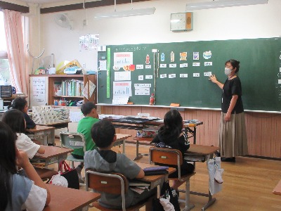 上三川町学校給食センターから栄養教諭の方による、食育の授業がありました。