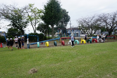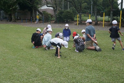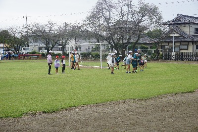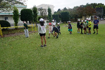 縦割り班活動による、共遊がありました。それぞれの班ごとに外で元気に遊びました。