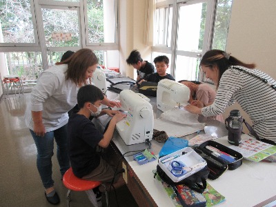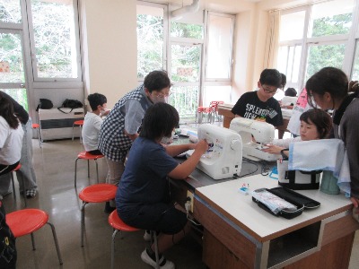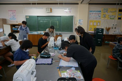 5年生の家庭科の授業で、ミシンボランティアさんにも御協力いただきながら、ランチマット作りを行いました。