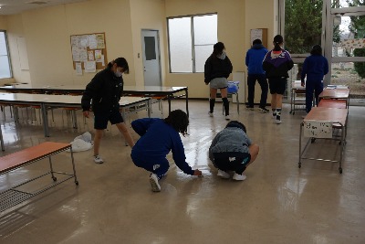 6年生がランチルームのワックスがけをしてくれました。とてもきれいになりました。