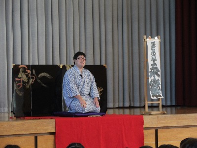 記念講演では、本校卒業生の塩谷昂浩さんによる落語を披露していただきました。