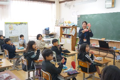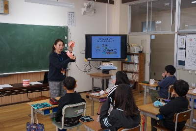 歯科医師の方に来ていただき、歯科学習を行いました。子供たちは真剣に話を聞いていました。