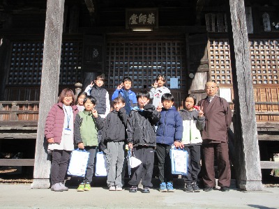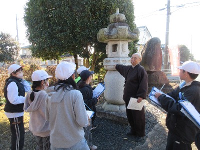 4年生が社会科の授業の一環として、満願寺、野外石仏地蔵、そして生沼家住宅へ行きました。満願寺では、ご住職様からの説明を熱心に聞いていました。