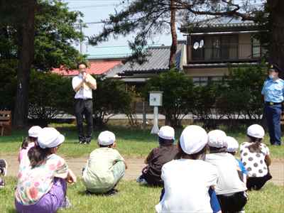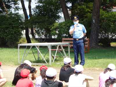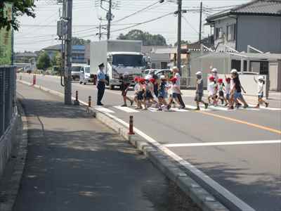 下野警察署交通課の六本木様が、子供たちの様子を観察し講評を交えながら、交通事故の発生件数や事故の状況などを話してくださいました。子供たちは、交通ルールを守ることについて、あらためて確認する機会となりました。