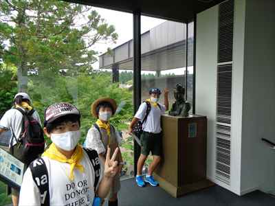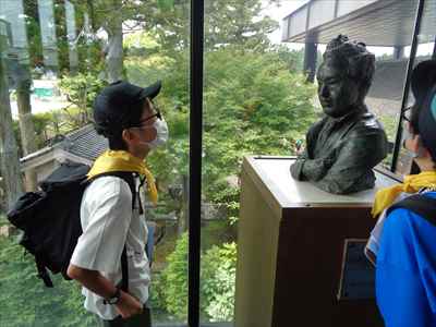 飯盛山は、目の前に伸びる階段に、まず一度驚きました。頑張って登り切り、江戸から明治に変わるとき、この場所で、歴史に残る大きな悲惨な出来事が起きたという説明を聞いて、二度目の驚きがありました。