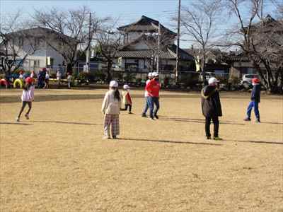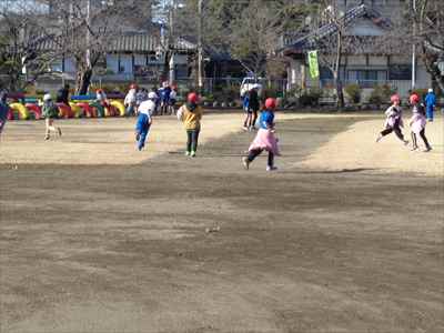 子供たちは、気持ちのよい天気のもとで、校庭一面を使って元気いっぱいに遊んでいました。