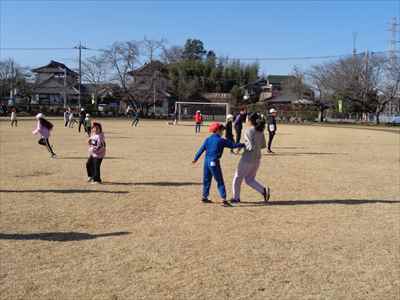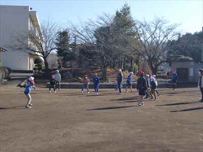 12月22日(水)、縦割り班で共遊を行いました。“鬼ごっこ、タイヤ跳びジャンケン、ケイドロ、だるまさんが転んだ、縄跳び、ドッジボール” の班にに分かれました。