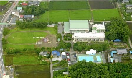 校庭に、全校児童・教職員で作ったデザインが見えます。