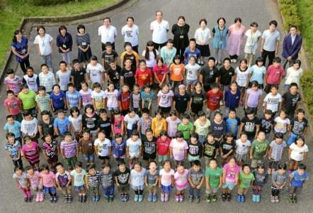 【集合写真】全校児童99名、教職員13名+ALT1名