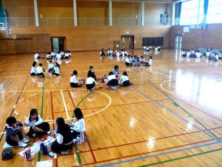 出発前に体育館で弁当を食べました。遠足みたいで楽しそうでしたね。