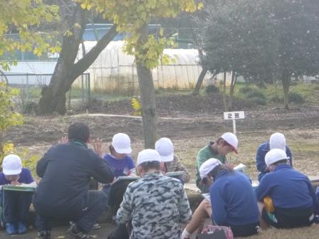 今日の昼休みは縦割り班ごとに「たんけん活動」を行いました。班ごとに決めた、年間を通して観察する樹木の様子を絵に描いたり、メモしたりしました。季節の変化とともに変わっていく樹木の姿をしっかり観察していました。