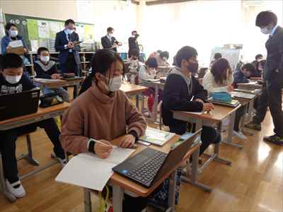 授業後には、全教員で荻原教諭の授業について協議しました。授業での子供たちの反応や課題に取り組む姿から、本時の学習活動は効果的であったかを振り返りました。鈴木智也先生と田代有一先生から授業づくりのポイントや本校の取組状況などについて指導助言をいただき、これからもよりよい授業が実践できるよう研修しました。