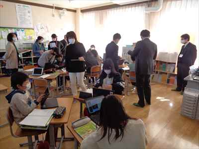 今回は、「自ら考え、対話を通して学びを深める理科学習の創造」を研究主題とし、本校の荻原教諭が5年生の理科「単元:ものの溶け方」で研究授業を行いました。子供たちはタブレット端末を活用しながら話し合い活動を行うなど、積極的な発言や主体的に取り組む姿が随所に見られました。