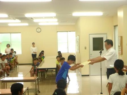 集会後、「歯と口の健康週間」「百ます計算大会(ひき算)」「校内水泳記録会」「あいさつ名人」「全国あんざんコンクール」「友遊いずみ杯(ミニバスケットボール)」の表彰を行いました。