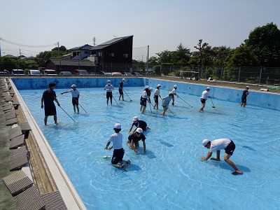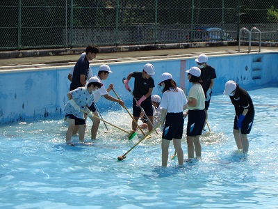4年生は小プールをきれいにしました。