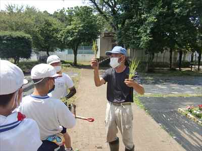 5年生は総合的な学習の時間で、「日本の主食である米や野菜を育てて料理を作ろう」という学習活動に取り組みます。6月9日(火)に米作りについて学習しました。