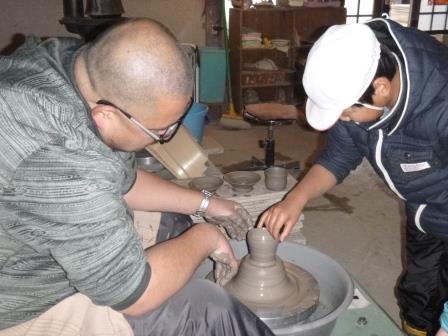 回転するろくろで形を作るときの力加減など、実際に体感することができました。