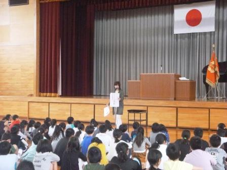 学習面について係の先生が、貝原益軒の「知って行わざるは、知らざると同じ」という言葉から、行動に移すことの大切さについて話しました。