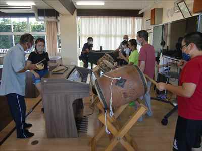 9月3日(木)、おまつりクラブでは、学習支援ボランティアティアティーチャーとして「森光流 坂上お囃子会」の皆様にリズムの取り方や太鼓の打ち方の指導をしていただきました。先週に比べ、“子供たちは太鼓の打ち方が上達している”とお褒めのことばをいただきました。