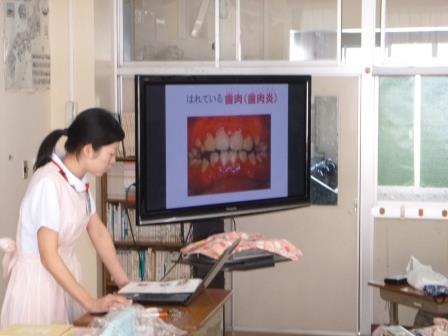 子どもたちは、歯肉炎で腫れている歯ぐきの映像に驚いていました。