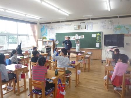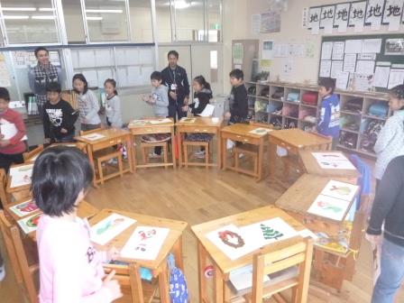 4年生がALTの先生と、クリスマスに関係するイラストを使ってゲームを楽しみながら英語に親しみました。