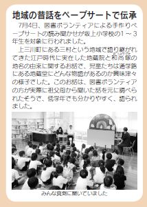 図書ボランティアさんによる読み聞かせの様子が、下野新聞と町の広報「かみのかわ」に掲載されました。