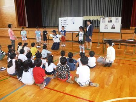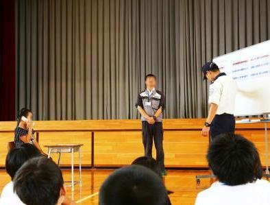 防犯の意識を高め、実践的な行動がとれるよう、1~4年生を対象に警備会社の方をお招きして防犯教室を開催しました。