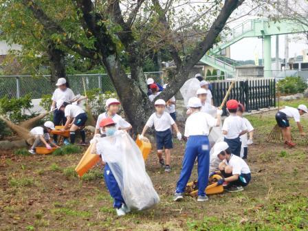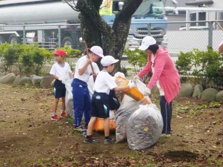 今日もみどり活動で落ち葉掃きをしました。毎回、子どもたちはたくさんの落ち葉を一生懸命に掃き集めています。