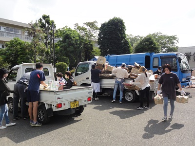 次々と運び込まれてくる資源物を、皆さんのお力で効率よく車から降ろすことができました。