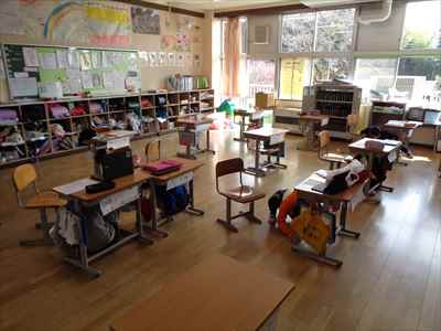 地震は、いつ、どこで起こるか分かりません。地震の揺れから身を守るには、その場所や状況に合わせて慌てずに行動する必要があります。シェイクアウト訓練は、地震の揺れを感じた直後の初動対応を身に付けることができる訓練です。今回、予告なしで昼休みに実施しました。