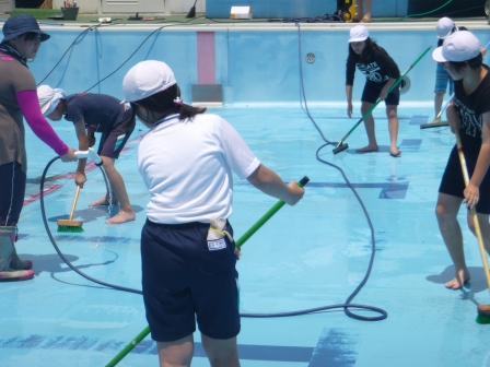 6月のプール開きに向けて,4~6年でプール清掃を行いました。ゴシゴシとこするたびにきれいになっていくプールを見ていた子どもたちの満足そうな笑顔が印象的でした。