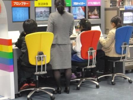 テレビ放送をするには、いろいろな役割があることを説明していただいた後、役割分担をして、実際に番組放送の体験をしました。