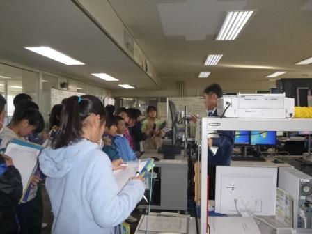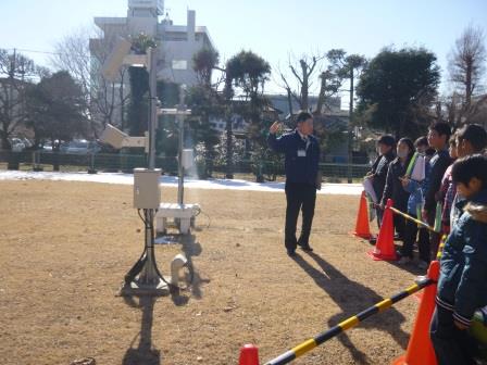 気象台の中を見学しながら、観測用機器の説明などをしていただきました。また、気象に関する実験もしました。
