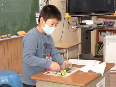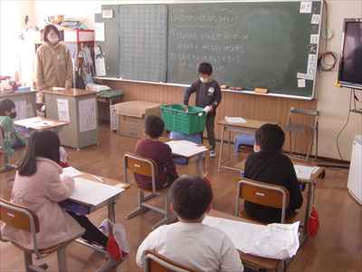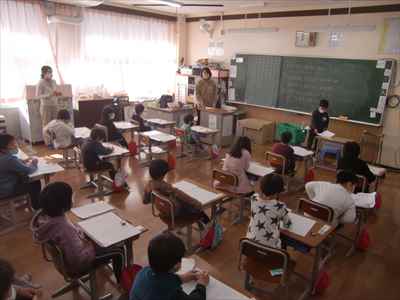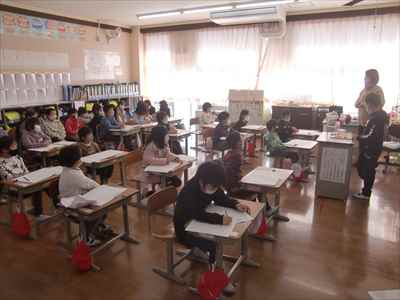 先日、1年生が生活科の単元「ひろがった えがおを つたえよう」の授業で、お手伝いについて発表しました。今回、家で挑戦したことを実演したり絵や文章でかいたりして、友達に分かりやすく伝えられるよう目指しました。