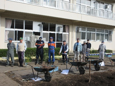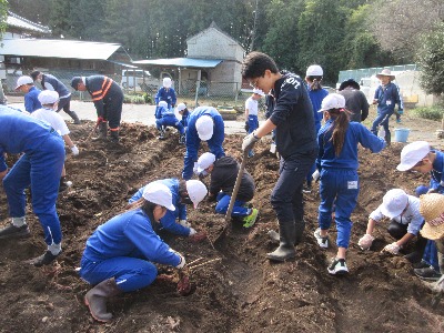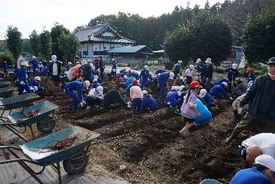 本日、坂小応援団の方々のお手伝いをいただき、全校児童による芋掘りが行われました。