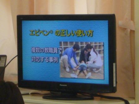職員研修で、学校におけるアレルギー疾患への対応について、取組ガイドラインや資料DVDの視聴、エピペンの使用法等の研修を実施しました。