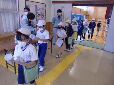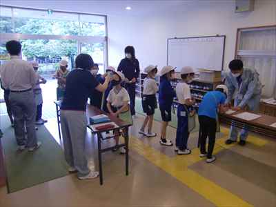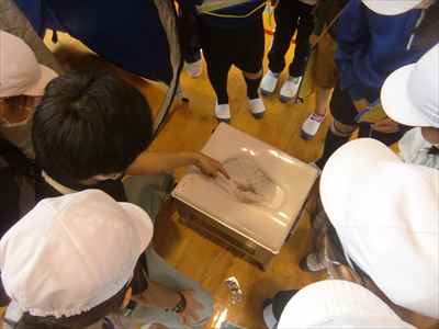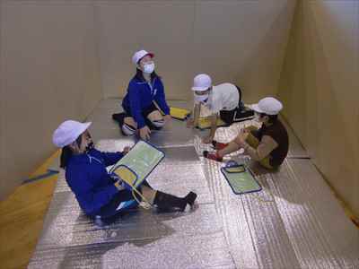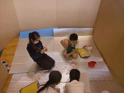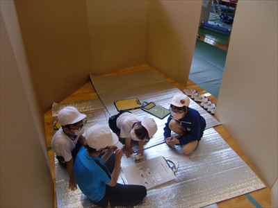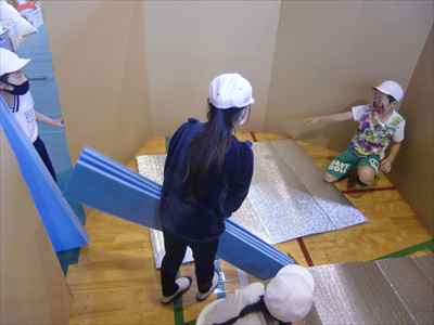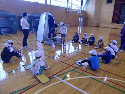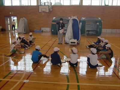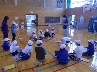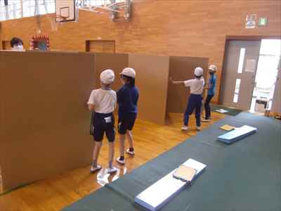 5月21日(金)、4年生を避難者として避難所開設訓練を実施しました。災害が発生した際に、避難所運営にあたる職員が確実、かつ速やかに避難者の受け入れ態勢を取ることができるよう目指しました。避難者の受付、段ボールパーティション及びアルミマットの設置、防災資機材の体験などを通して、災害時に必要なものを再確認しました。子供たちはグループで防災グッズについて話し合いをするなど、たいへん貴重な時間を過ごすことができました。