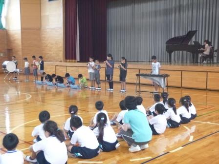 音楽に親しみ、表現力を養うことをねらいとして、音楽集会を行っています。今回は、2・5年生が発表しました。2年生はかわいらしく、5年生はとてもしっかりと、それぞれの学年にふさわしい発表でした。11月には3・6年生が、1月には1・4年生が発表を予定しています。