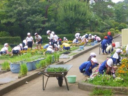 みんなで協力して、花壇の除草をしました。