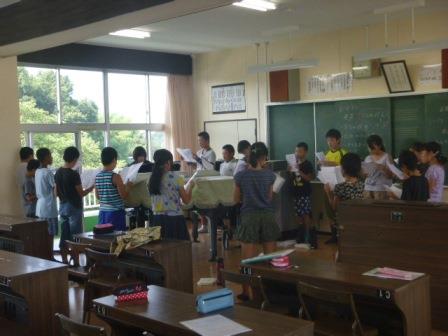 5・6年生全員と3・4年生の希望者で合唱部を編成し、10月に開催される「うつのみやジュニア芸術祭」に向けて練習に励んでいます。当日は、宇都宮市文化会館の大ホールで発表します。あの大きなステージの上で大観衆を前に発表するというのは、子どもたちにとってとても貴重な経験となることと思います。