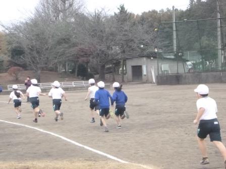 1周500mのコースを、1・2年生は2周(1000m)、3・4年生は3周(1500m)、5・6年生は4周(2000m)走りました。