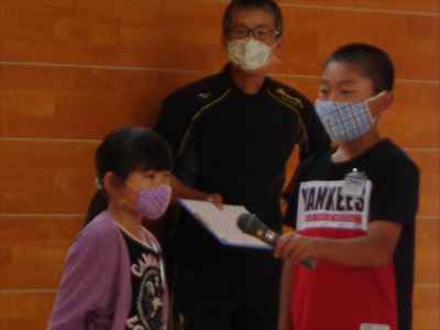 校長先生から「感謝の心をもち、認め合い、支え合い、協力して行動しようとする子ども」に成長するよう励ましの言葉がありました。