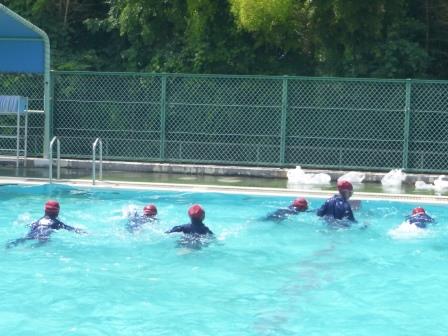本校では、低・中・高学年ごとに年1回着衣水泳を実施しています。今日は、3・4年生が実施しました。