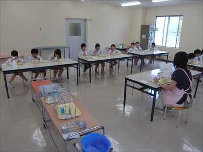 8月5日(水)は、夏休み前最後の給食でした。子供たちは、3時間授業を行い、給食そして帰りの会という日程で生活してきました。