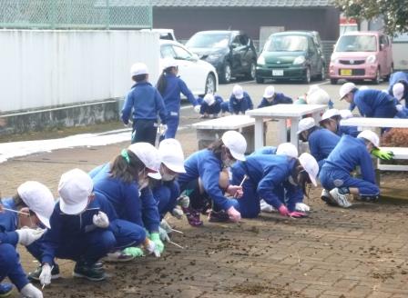 全校生で割り箸を使って、丁寧に苔を取り除きました。