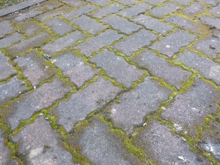 今日の“みどり活動”は、全校生でレンガ目地の苔とりをしました。