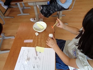 つまむ、混ぜる、切る、剥がす、骨を取る、くるむを、付箋紙やスポンジやモールなどの道具を使って実践してみました。