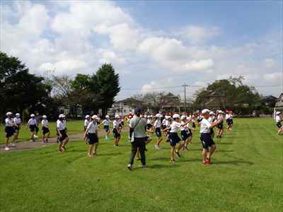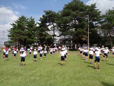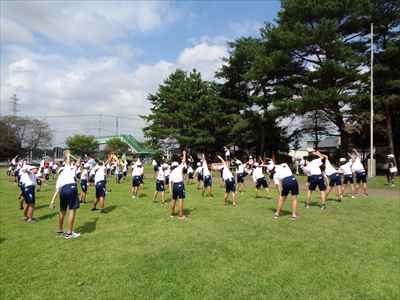 9月9日(水)、2回目の全体練習を行いました。1回目の反省を意識して、動きの修正を図りながら取り組みました。今回は、指先まで伸ばして腕の振りや脚の高さを意識して入場行進と、準備運動(ラジオ体操第1)の動きができているかどうか確認しました。