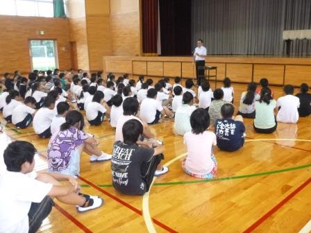 明日から、子どもたちが楽しみにしていた夏休みが始まります。楽しく健康で有意義な夏休みとなるよう、全校集会を開きました。夏休み中に、何か頑張ることを決めて取り組んでほしいことや生活面・学習面について意識してほしいことなどを話しました。何より子どもたちが元気に過ごし、夏休み明けにいろいろな話をしてくれることを願っています。楽しい思い出がたくさん作れますように!