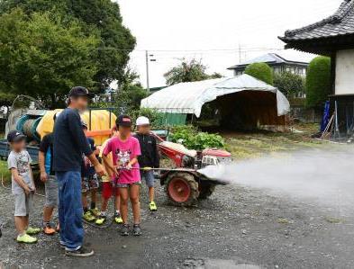 噴霧器を使った薬剤散布の体験をしました。(もちろん水ですが・・・)